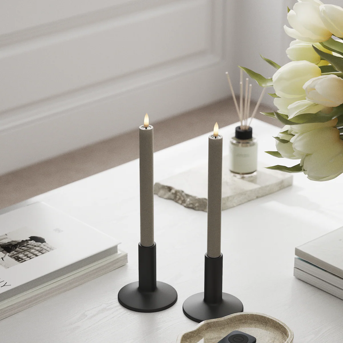 Met de aan/uit-knop aan de onderzijde gebruik je de kaars eenvoudig handmatig. Voor extra gemak gebruik je de optionele afstandsbediening waarmee je de timer instelt op 2, 4, 6 of 8 uur – ideaal om energie te besparen en altijd thuis te komen in een sfeervol verlichte ruimte.