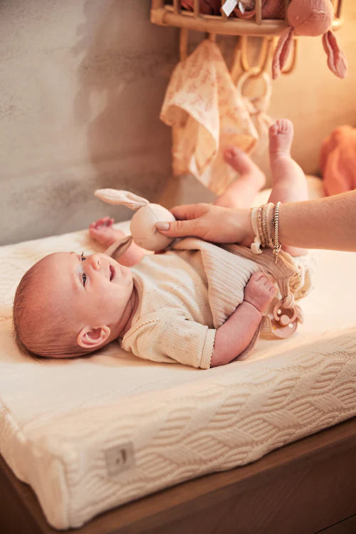 Dieses niedliche Schnullertuch in Form eines süßen Häschens ist aus extraweichem, knitterigem, saugfähigem Material gefertigt. Es ist nicht nur ein kuscheliger Begleiter für Ihr Baby, sondern auch ein praktisches Accessoire, um den Schnuller immer griffbereit zu haben. Ihr kleiner Schatz kann sich mit diesem weichen Häschen tröstend einkuscheln – der Schnuller ist immer in Reichweite. Dieses bezaubernde Schnullertuch ist in den Farben Olivgrün, Mondstein und Wildrose erhältlich.