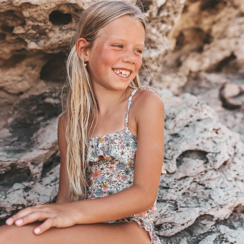 Mit dem Badeanzug „Sparkly Flowers“ von Salted Stories wird jedes Strand- oder Poolabenteuer zum Fest. Der lebendige Blumendruck in Kombination mit dezenten Glitzerdetails macht diesen Badeanzug zu einem echten Hingucker.