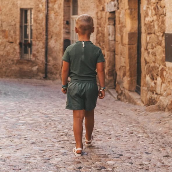 Die einfarbig grünen Badehosen von Salted Stories sind ein Must-have für sonnige Tage am Strand oder Pool. Mit ihrer zeitlosen grünen Farbe und dem dezenten Palmenmuster lassen sie sich mühelos mit jedem Sommeroutfit kombinieren.