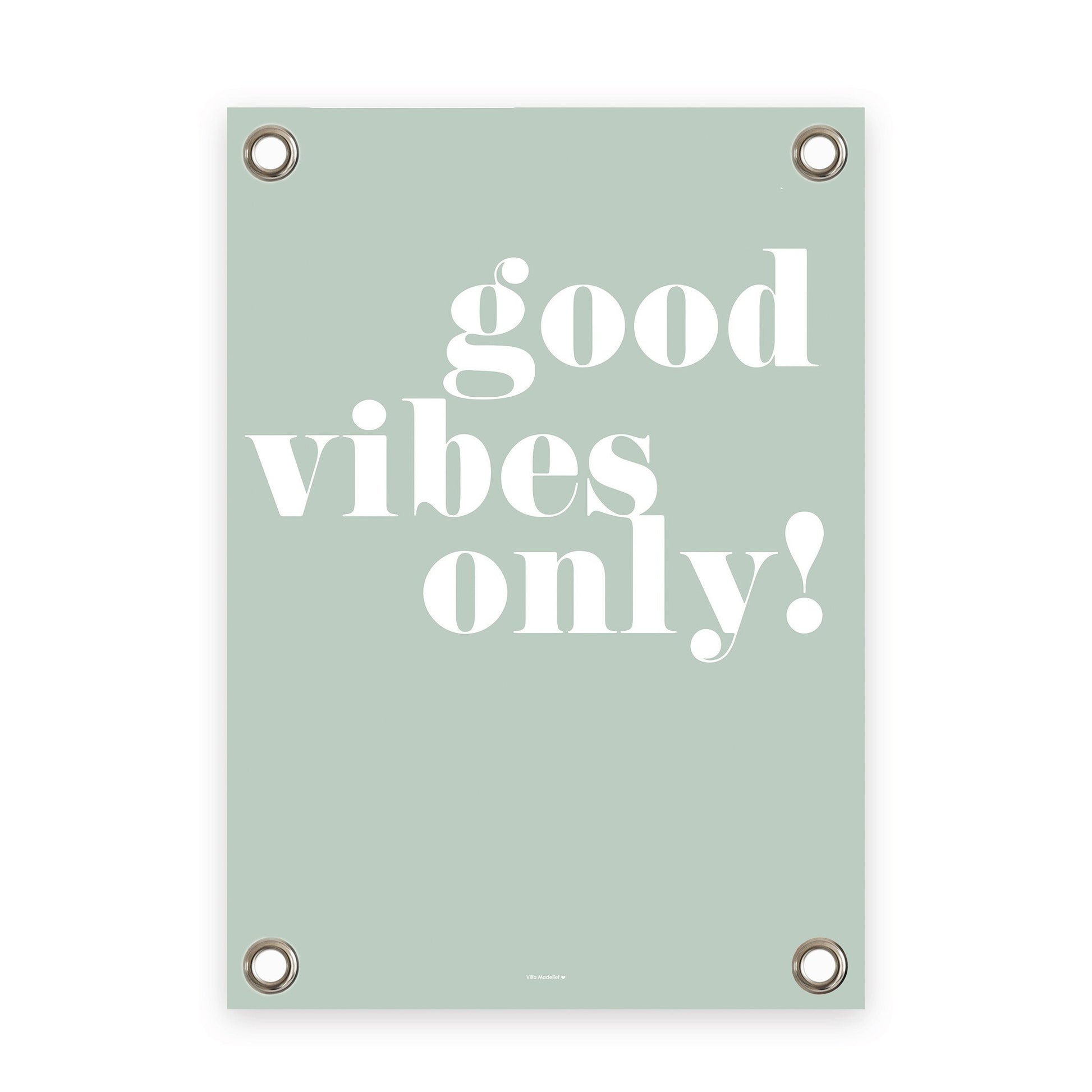 Holen Sie sich mit diesem trendigen grün-weißen Gartenposter „Good Vibes Only“ die Atmosphäre von drinnen nach draußen.