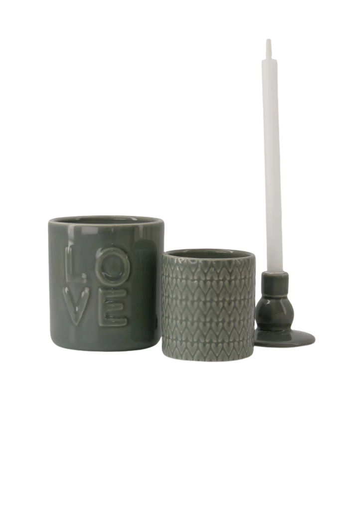 Zusss | Duftkerze aus Keramik mit Herzen, dunkelgrün