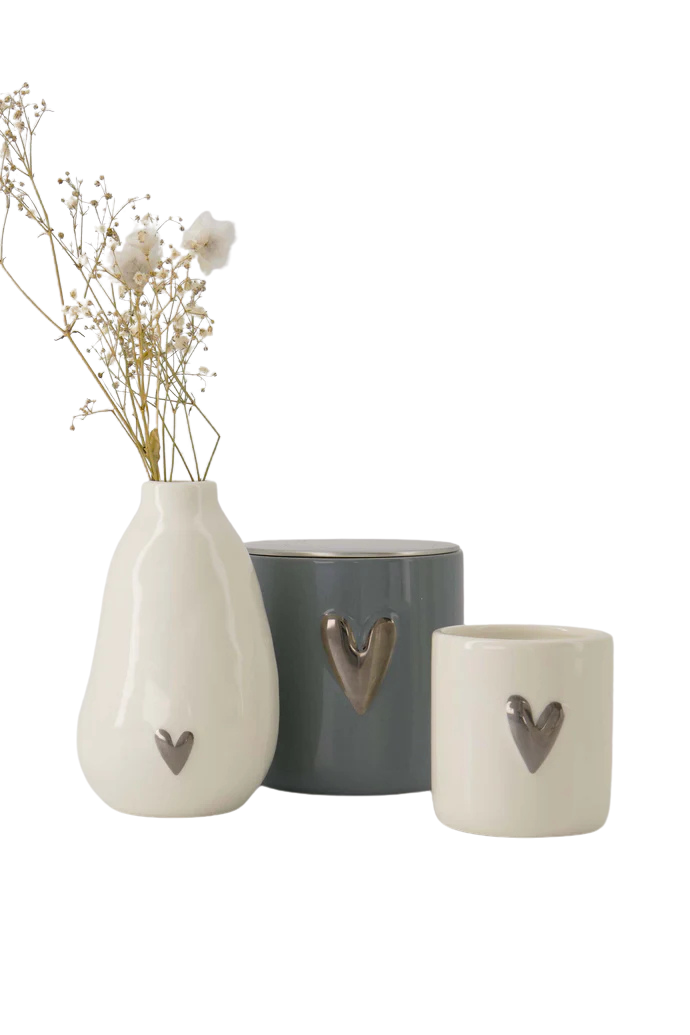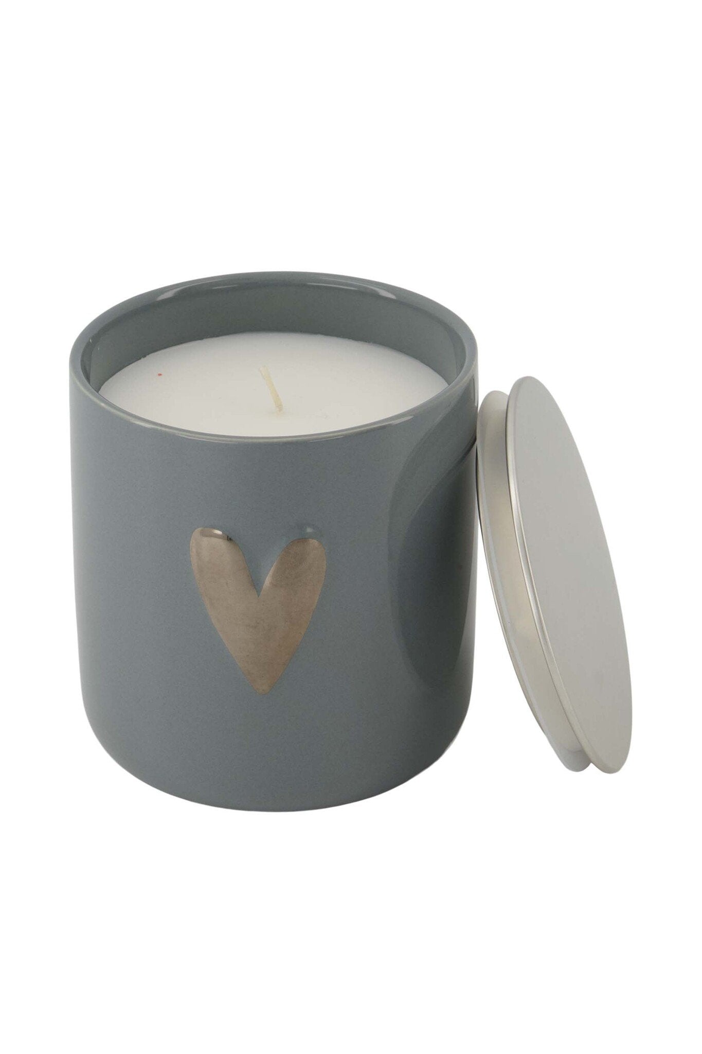 Zusss | Duftkerze aus Keramik, silberfarbenes Herz, graublau