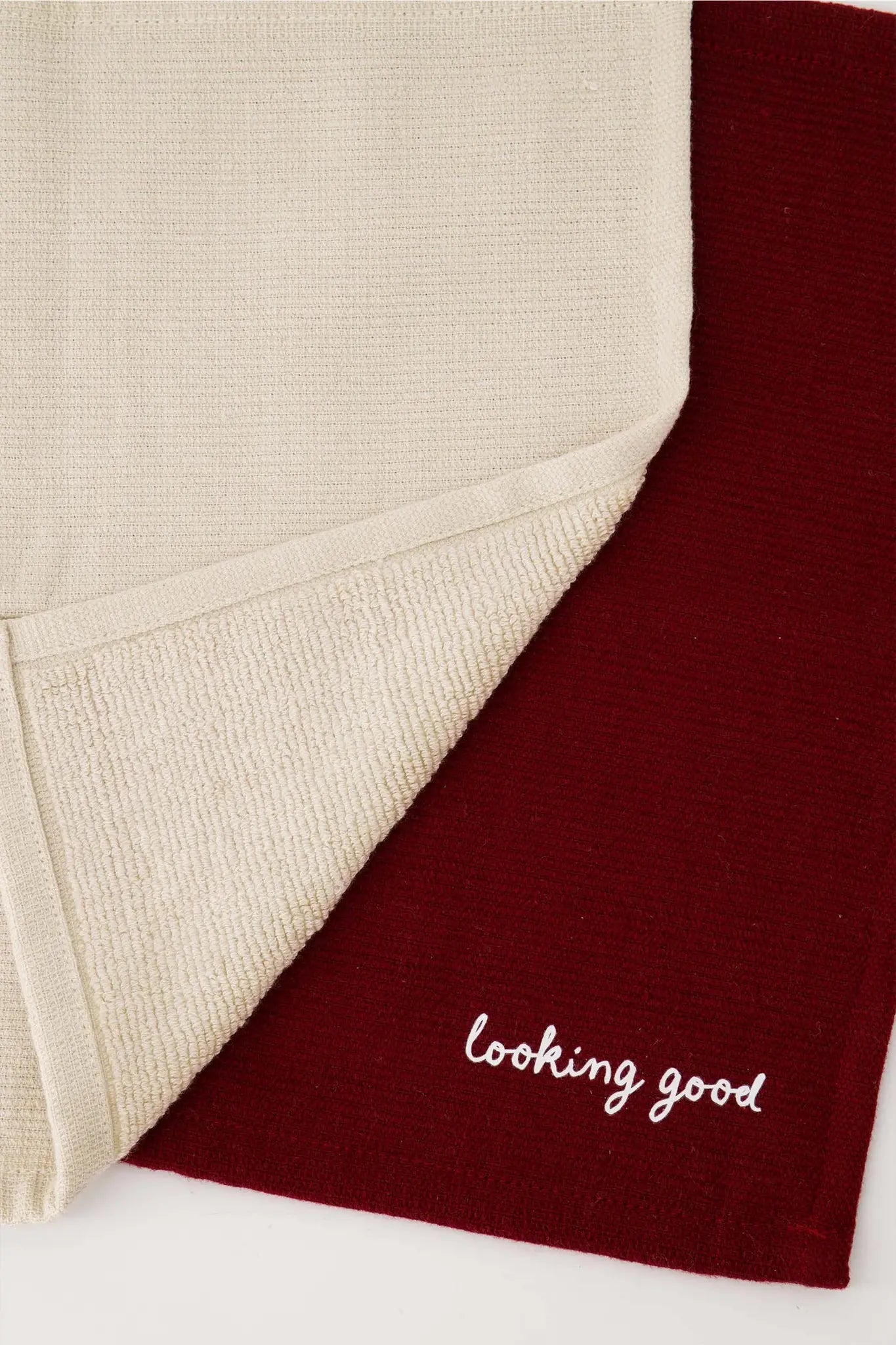Die Zusss Geschirrtücher in Sand und Port sind eine fantastische Ergänzung für jede Küche. Sie bestehen aus 100 % Baumwolle und sind daher wunderbar weich und strapazierfähig. Perfekt für alle Ihre täglichen Küchenarbeiten. Die dezenten Textdetails verleihen Ihrer Küche ein warmes und einladendes Ambiente. Ob Sie schnell etwas abwaschen oder ein komplettes Menü zubereiten – diese Tücher sind Ihr idealer Begleiter.