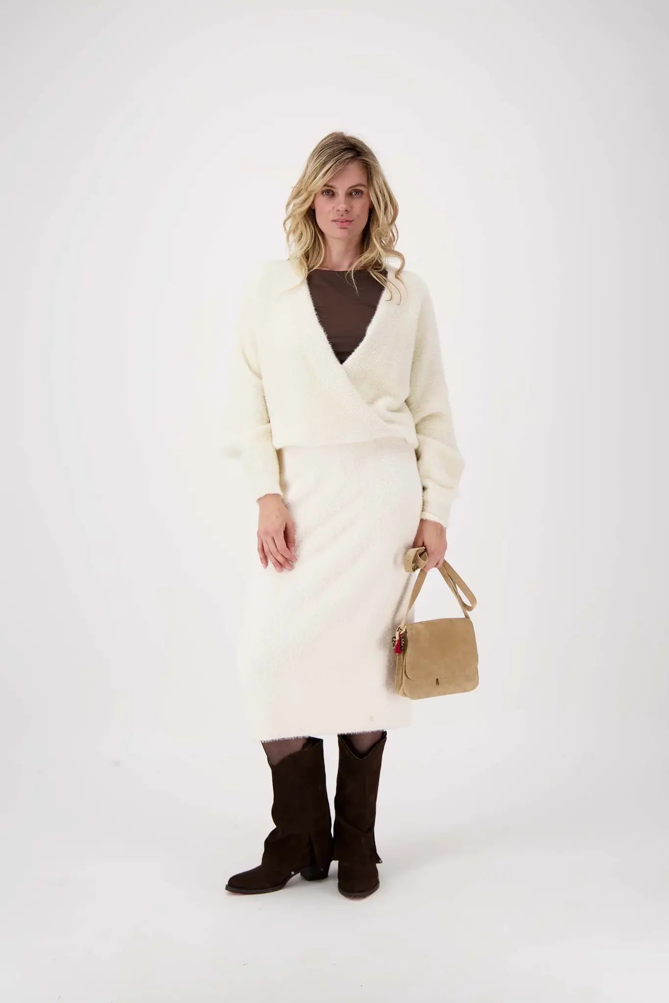 Zusss | Wickelpullover aus flauschigem, cremeweißem Garn