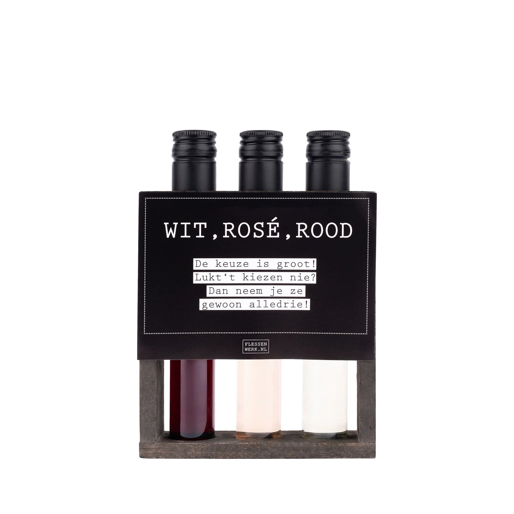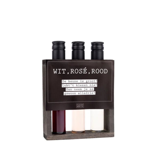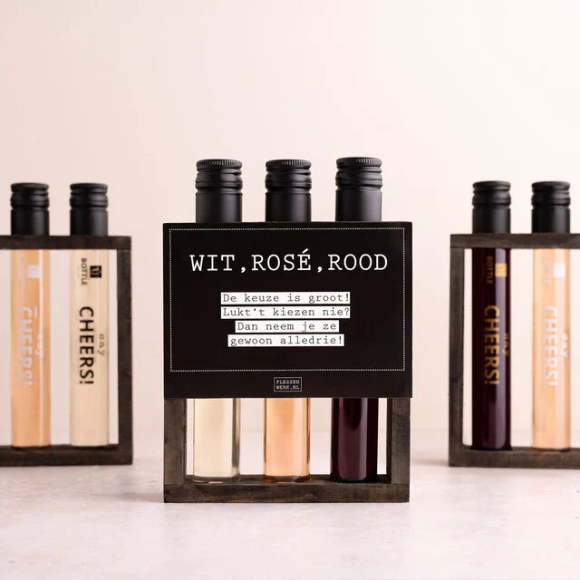 Ontdek de wereld van wijn met deze heerlijke proefset. Of je nu van wit, rosé of rood houdt, je hoeft niet te kiezen—geniet van alle drie!