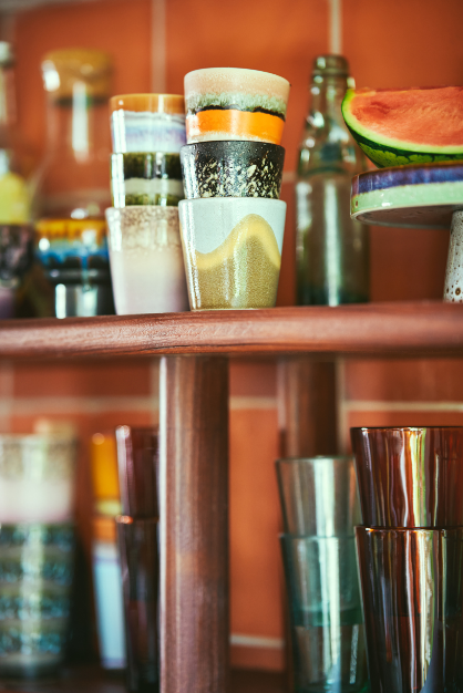 HK Living staat bekend om hun unieke en stijlvolle ontwerpen die een moderne twist geven aan retro stijlen. Hun servies, zoals de 70's collectie, brengt kleur en karakter in je keuken.