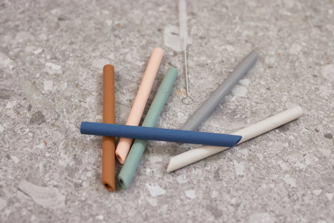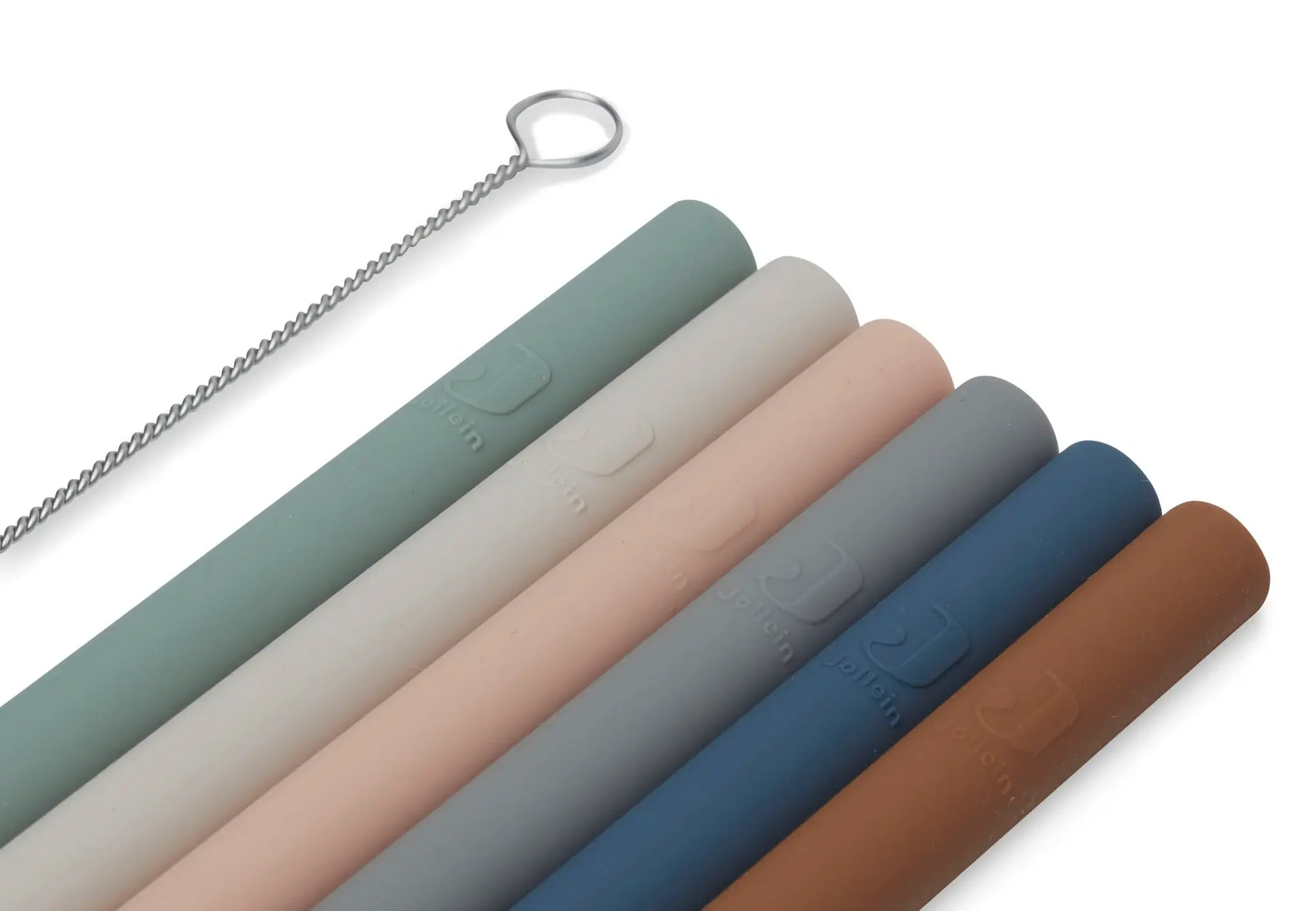 Deze rietjes zijn gemaakt van hoogwaardig siliconenmateriaal, waardoor ze zacht en veilig zijn voor kleintjes die graag sabbelen of bijten. Ze zijn perfect voor onderweg of thuis en kunnen na gebruik eenvoudig in de vaatwasser. Met zes verschillende kleuren in één verpakking – caramel, ash green, storm grey, nougat, pale pink en jeans blue – voeg je een vrolijke touch toe aan elk drankje.