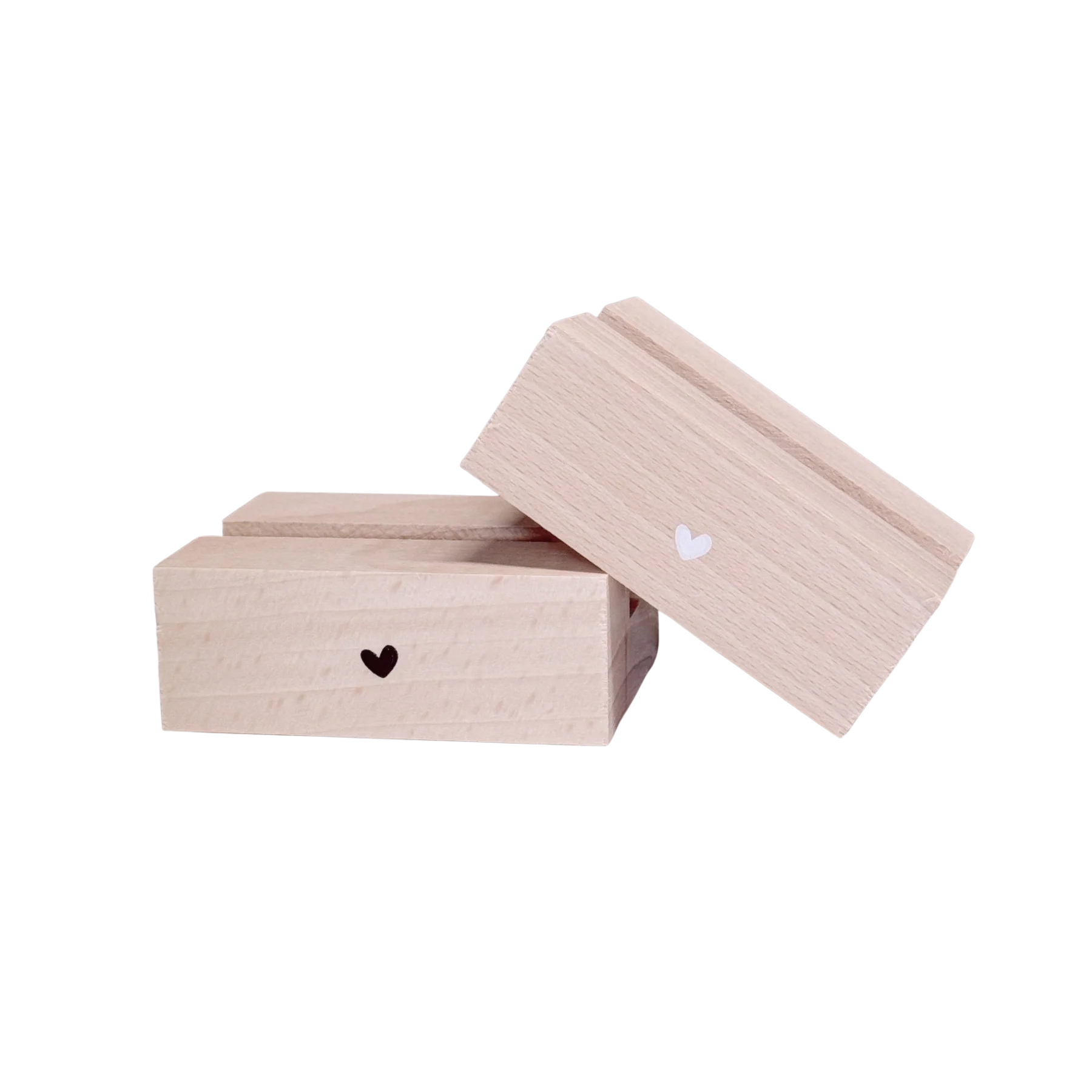 Mooie houten standaard voor je favoriete tegeltje voorzien van een subtiel wit hartje