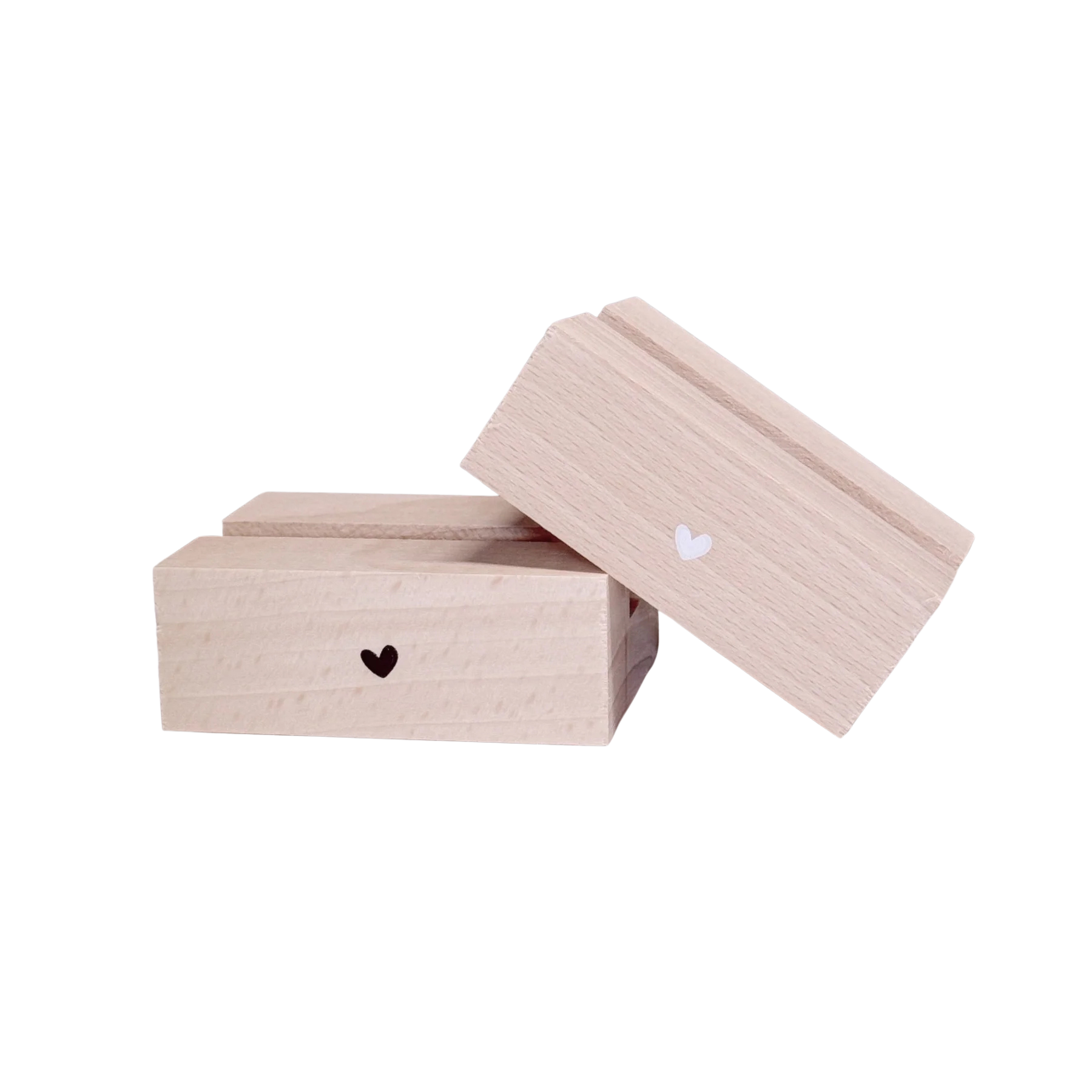 Mooie houten standaard voor je favoriete tegeltje voorzien van een subtiel zwart hartje