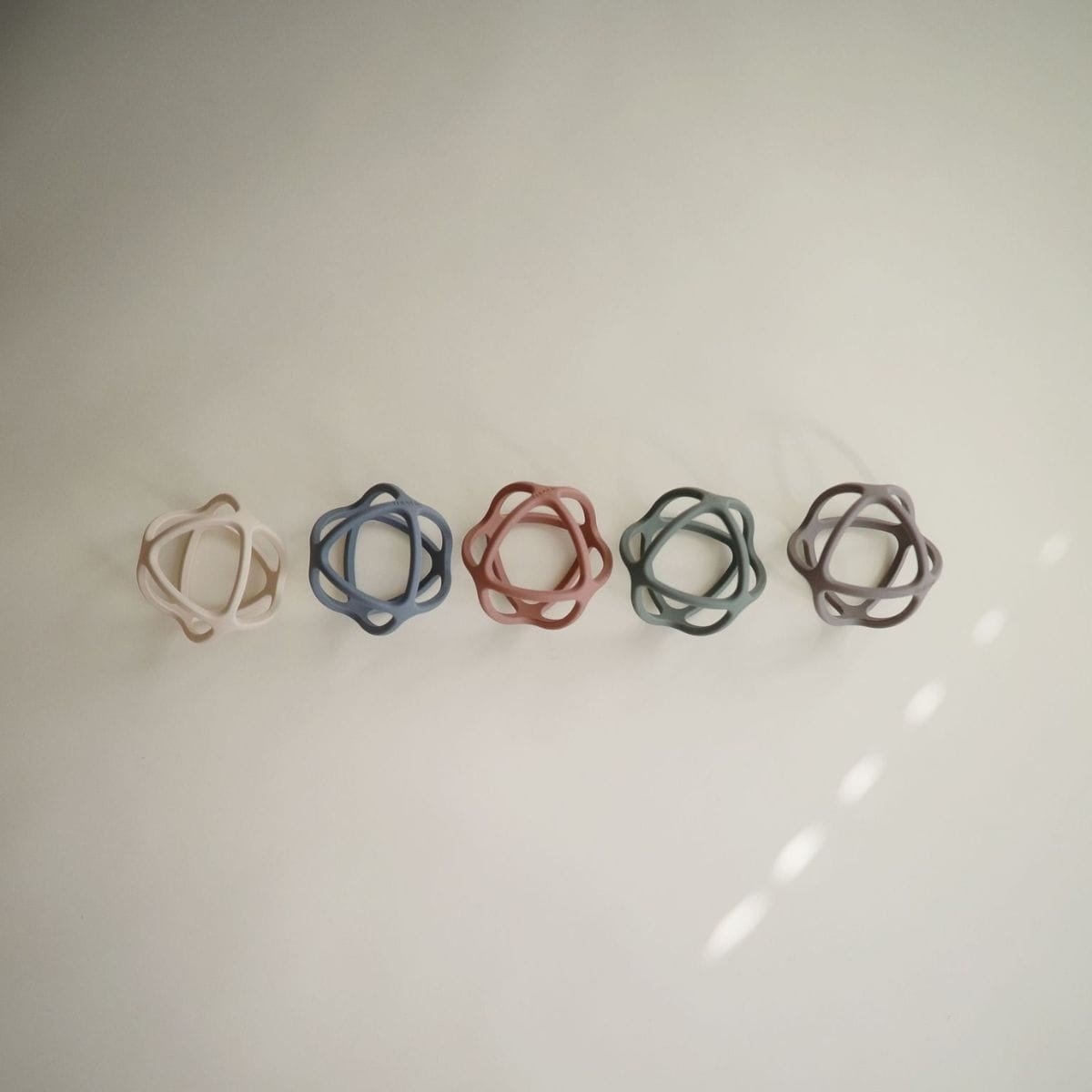 Onze bijtringen zijn gemaakt van voedselveilig silicone en zo ontworpen dat ze gemakkelijk door kleine vingertjes kunnen worden vastgepakt.