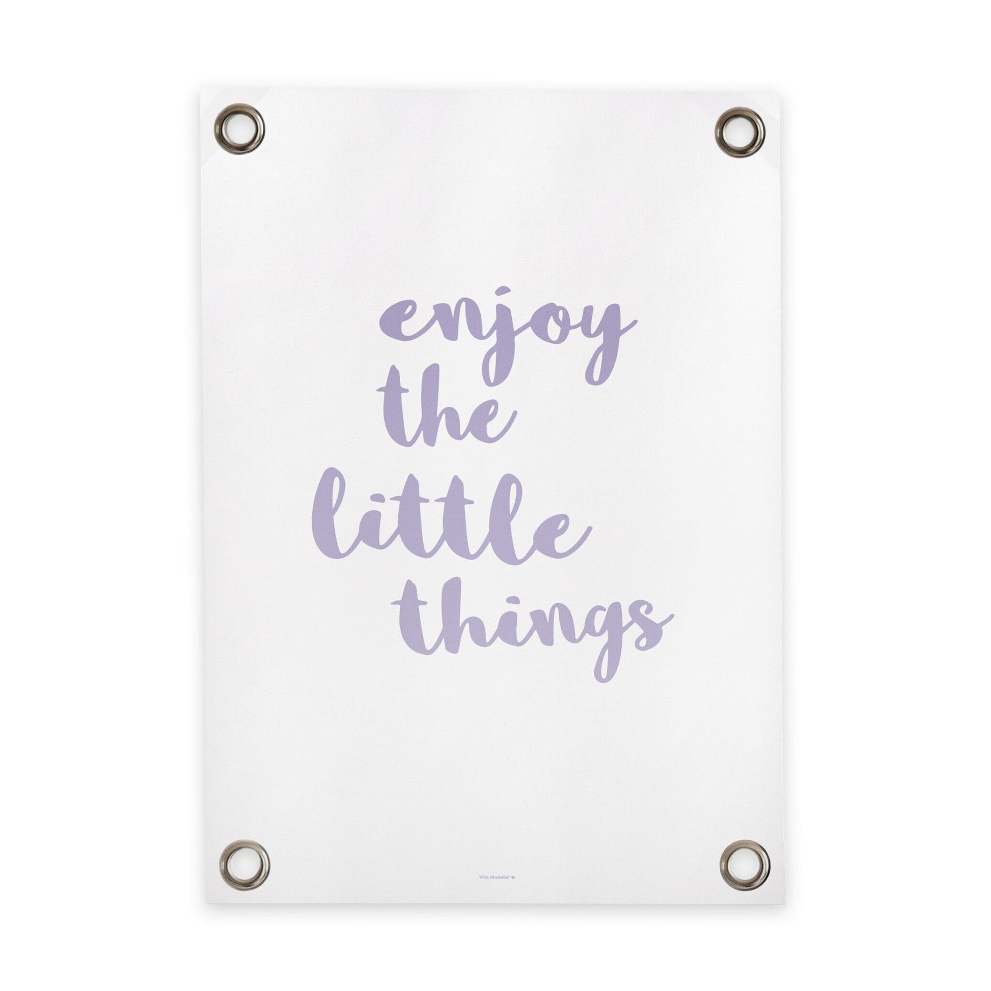 Haal de sfeer van binnen naar buiten met deze hippe tuinposter wit paars enjoy the little things