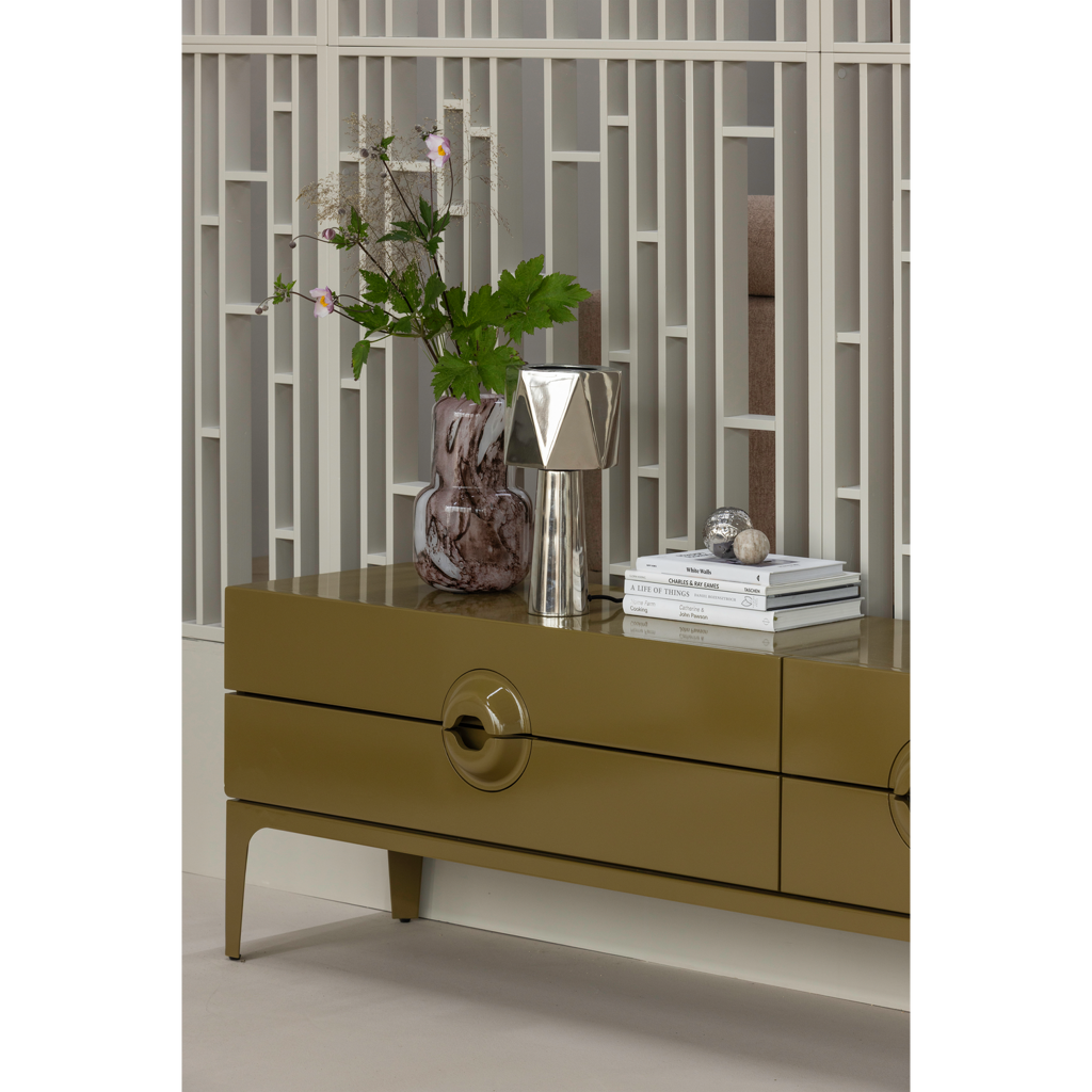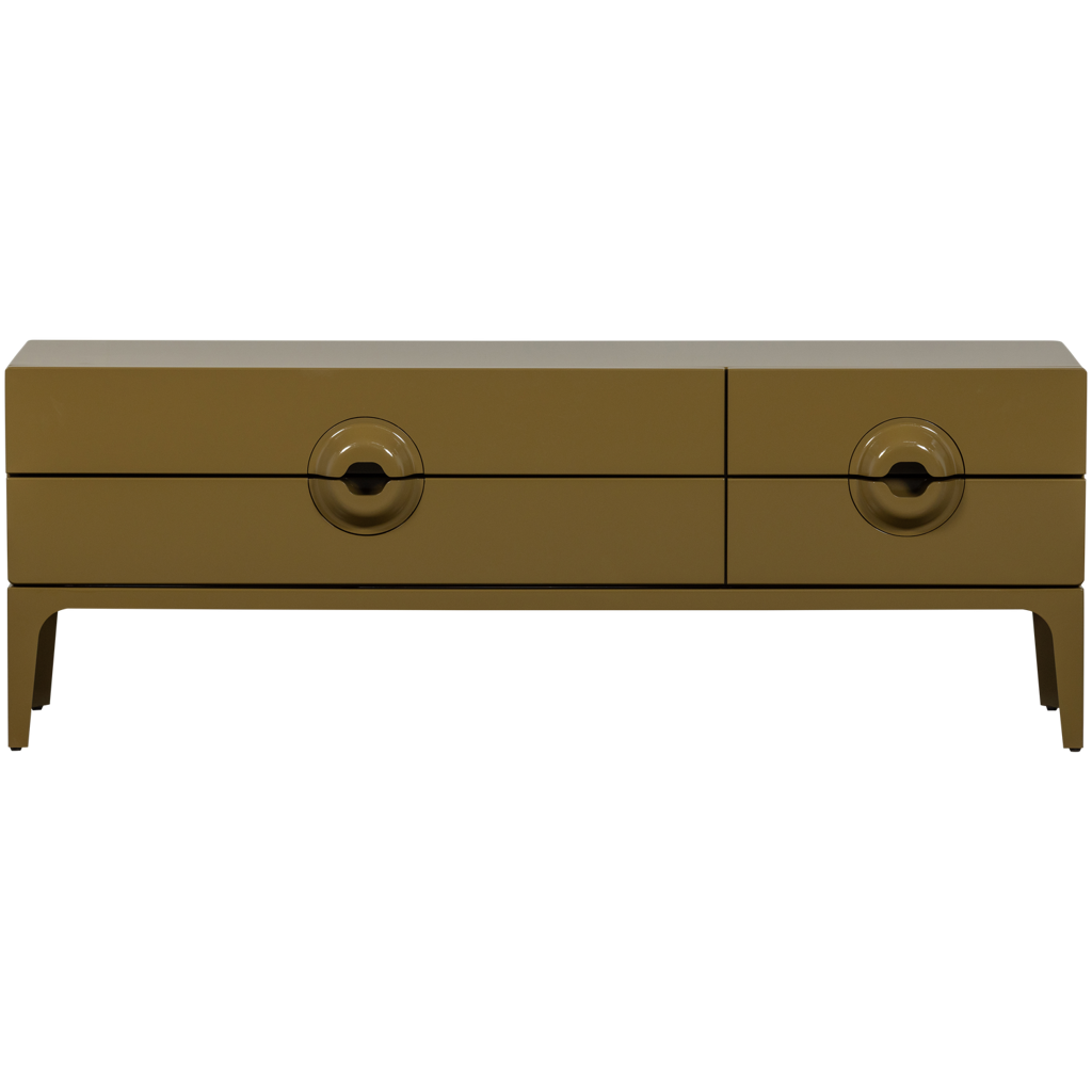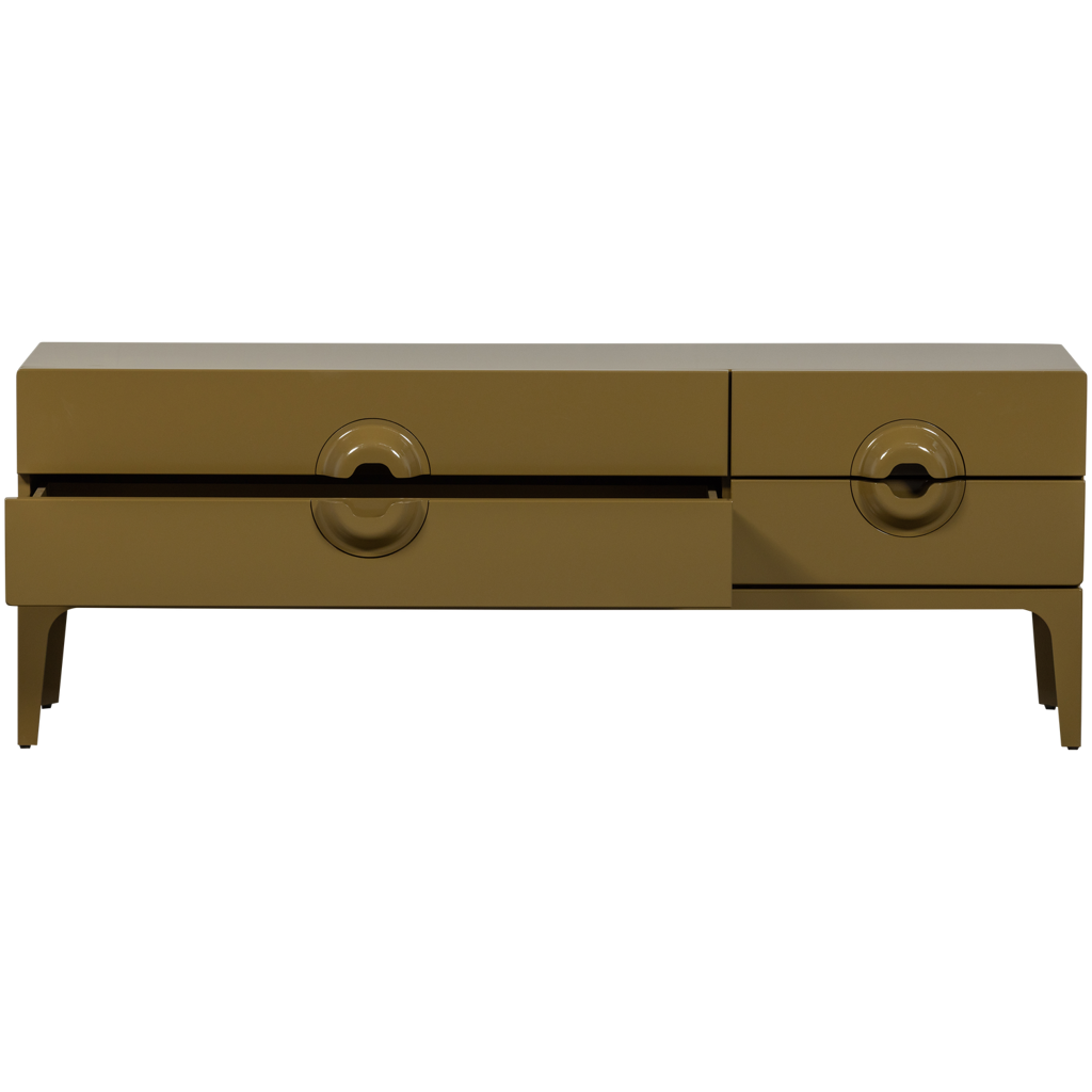 Ben je op zoek naar een stijlvolle en functionele toevoeging aan je TV meubels? Dan is de Merge in honinggeel van WOOOD precies wat je nodig hebt.