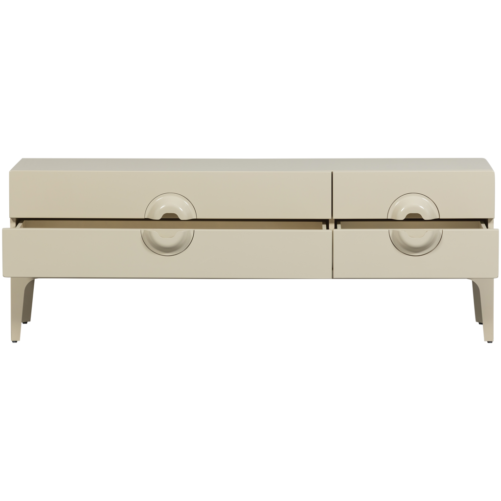 - Vervaardigd uit Eucalyptus hout - Unieke handgrepen - Voorzien van metalen poten - H 57 cm x B 160 cm x D 44 cm Merge is een tv-meubel met een retro design uit de collectie van het Nederlandse merk WOOOD. De Merge is niet alleen een stijlvol tv-meubel, maar biedt ook volop ruimte om spullen netjes en uit het zicht op te bergen. Zo heeft het vier ruime lades, die elk zijn voorzien van een unieke handgreep. Met zijn creatieve uitstraling en functionele ontwerp is dit tv-meubel een echte must-have! Kenmerken Eucalyptushout staat bekend om zijn uitzonderlijke duurzaamheid en sterkte. Dankzij de natuurlijke olien die het hout bevat, is het van nature resistent tegen rot en insecten. Dit hout heeft een aantrekkelijke, warme kleur die varieert van licht- tot donkerbruin en beschikt over een gladde textuur met een rechte nerf. Afmetingen - Hoogte: 57 cm - Breedte: 160 cm - Diepte: 44 cm - Poothoogte tot onderkant frame: 22 cm - Dikte lade: 2,5 cm - Afmetingen grote lade: H 8,5 cm x B 99,5 x cm D 27 x cm - Afmetingen kleine lade: H 8,5 cm x B 40,5cm x D 27 cm - Gewicht: 73 kg - Draaggewicht: 120 kg Onderhoud Het onderhouden van eucalyptushout is eenvoudig. Voor regelmatig onderhoud maak je het hout schoon met een zachte borstel en een mild sopje, waarna je het afneemt met een vochtige doek en vervolgens droogt met een theedoek. Om kringen en vlekken te voorkomen, is het belangrijk om vochtige plekken meteen droog te maken. Stabiel en veilig gebruik Voor kasten hoger dan 50 cm raden we aan om extra aandacht te besteden aan de muurbevestiging. De montage van de valpreventie voorkomt ongelukken en behoudt de kast voor kantelen. Levering Het artikel wordt in een pakket geleverd en is eenvoudig te monteren aan de hand van de bijgeleverde montagehandleiding. Plaats voor het beschermen van harde vloeren viltglijders aan de onderzijde van de poten.