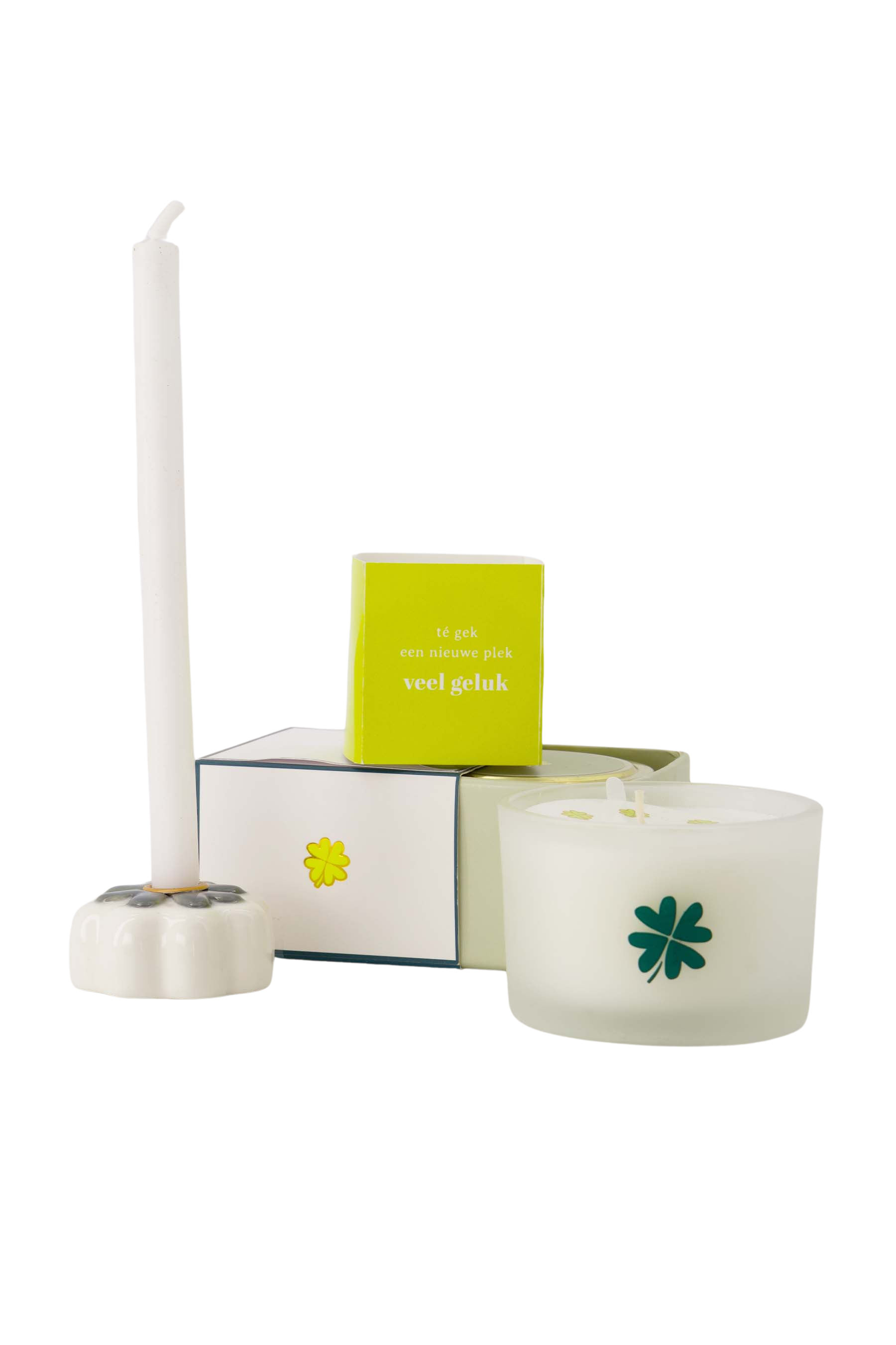 Zusss | Geurkaarsje tinnen in schuifdoosje veel geluk klavertje wit/groen