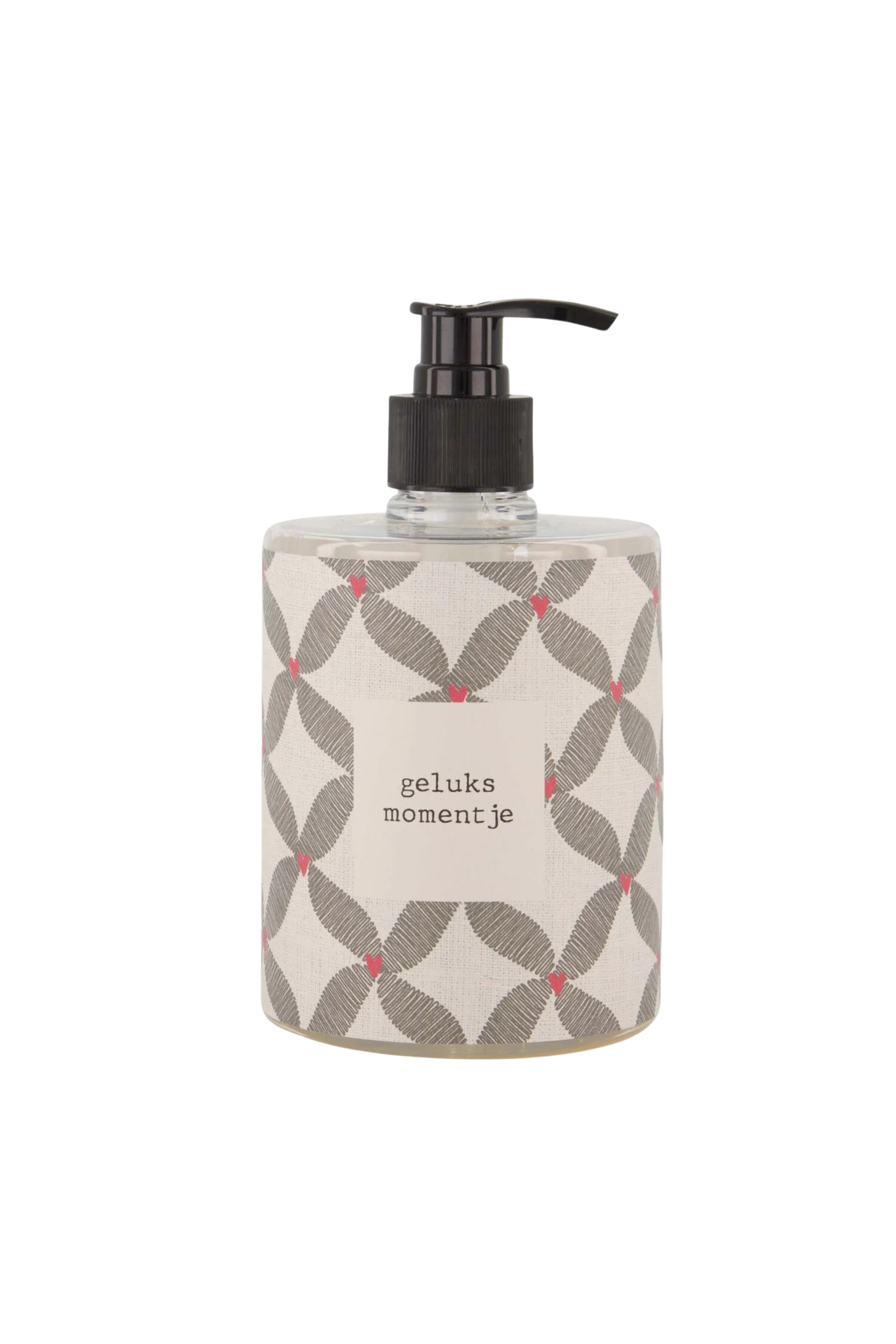 Zusss handzeep 500ml geluksmomentje antracietgrijs/roze rood|Dankzij deze handzeep van Zusss is het wassen van je handen een feestje! Het etiket rondom de fles heeft een grafische print in het antracietgrijs. Daarop staat de tekst: geluksmomentje. In de fles zit 500ml aan doucheschuim met een heerlijke zachte, frisse geur. Al onze verzorgingsproducten zijn dierproefvrij tot stand gekomen. Er worden dus geen producten en ingrediënten op dieren getest. Aan wie geef jij dit item kado? |Zusss: basic, stoer, uniek en een tikkeltje eigenwijs.