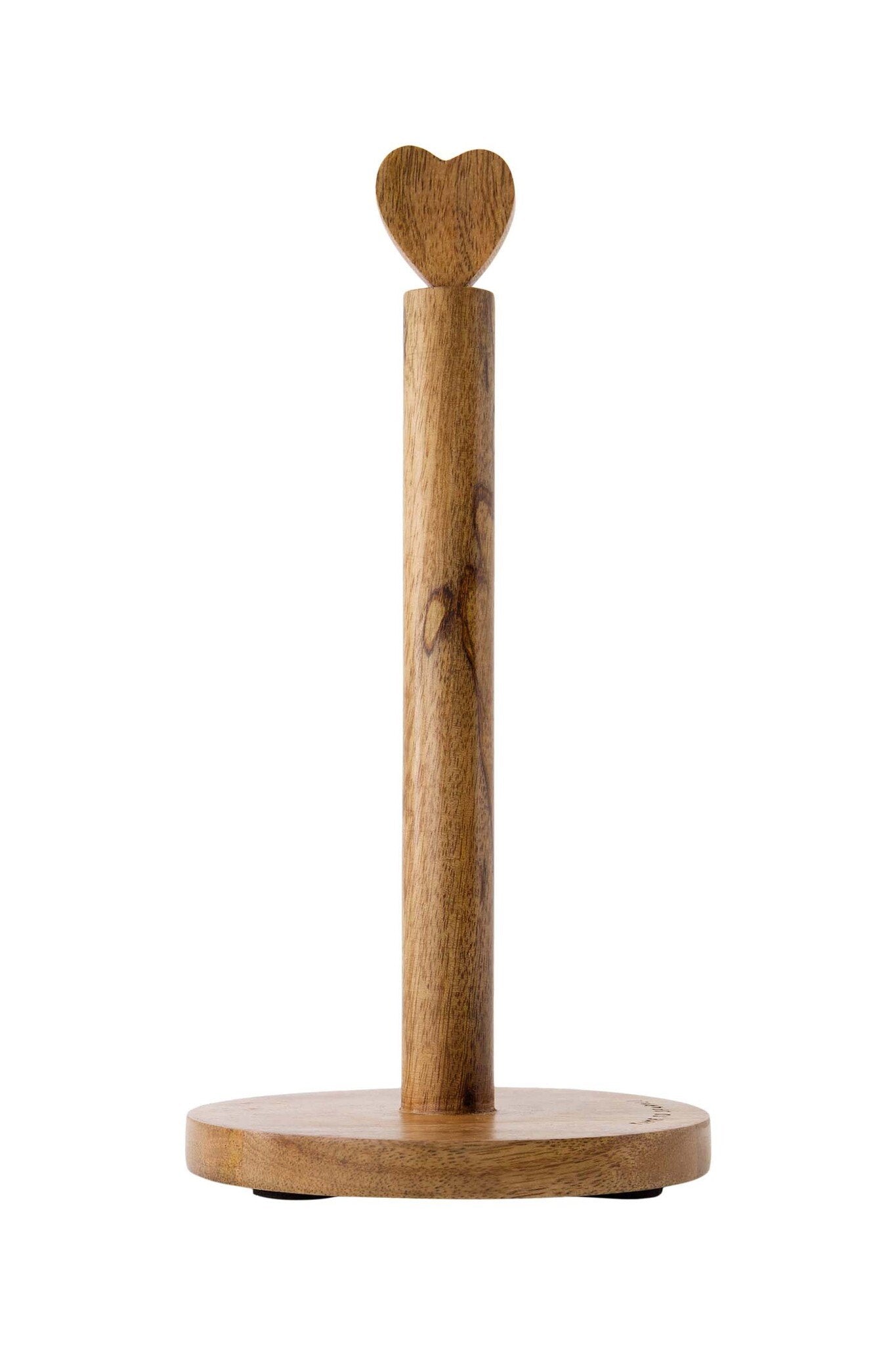 Deze keukenrolhouder van natuurlijk mango hout is meer dan alleen praktisch—het voegt ook een gezellige sfeer toe aan je keuken. Het subtiele hartje bovenaan geeft een charmant detail zonder te overheersen. Het robuuste materiaal voelt stevig aan en past prachtig bij een warme, natuurlijke woonstijl. Dankzij het compacte ontwerp neemt het weinig ruimte in, terwijl het je keukenrol netjes op zijn plek houdt.