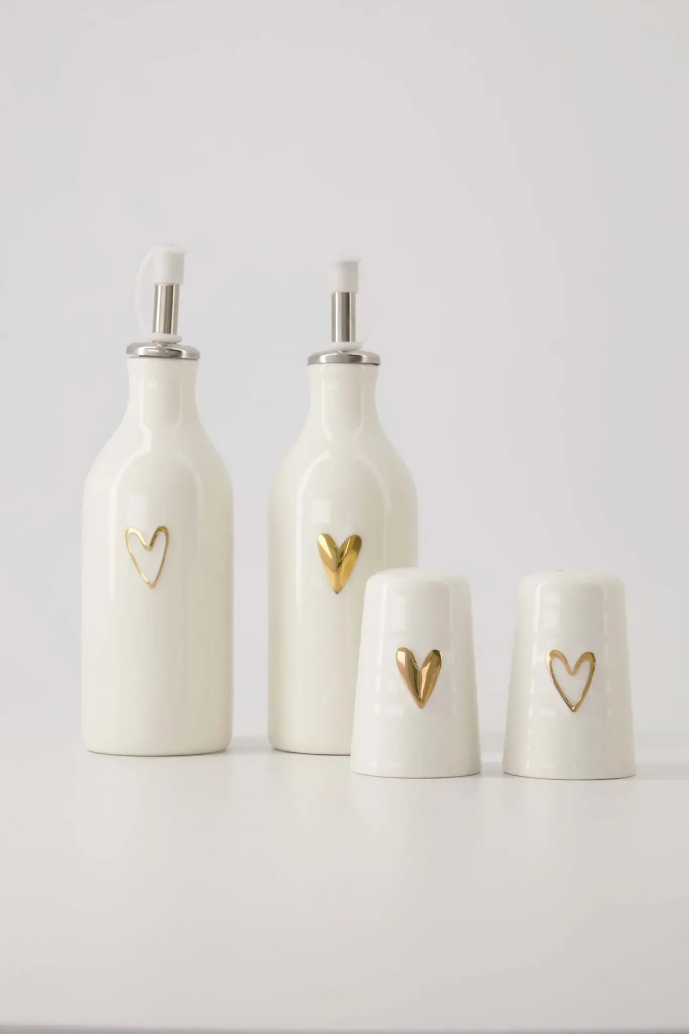 Het Zusss keramiek peper en zout stel brengt warmte aan je keukentafel met een subtiel wit en goud design. Dit keukenaccessoire, gemaakt van hoogwaardig keramiek, is voorzien van schattige hartjes in goud die het helemaal eigen maken. Het peper en zout stel is een sfeervol detail dat in elke keuken past en zorgt voor een persoonlijke touch tijdens het eten. Het wit en goud combineren mooi en geven een basic maar stoere uitstraling aan je servies.