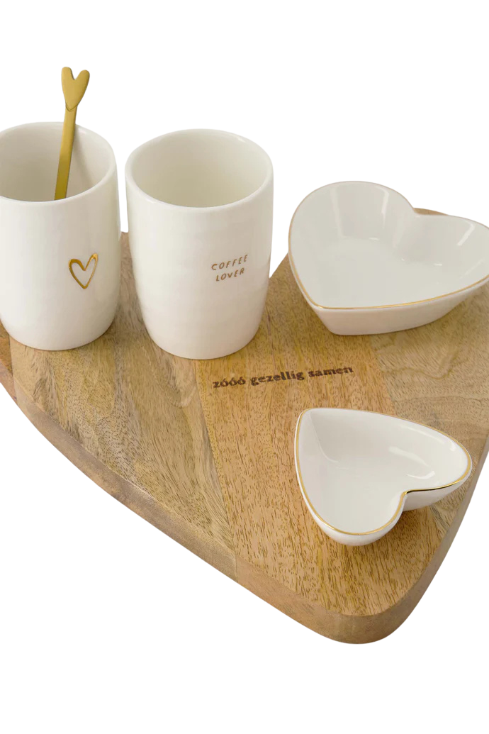 De Zusss serveerplank hout hartje naturel brengt warmte aan tafel. Deze serveerplank hout hartje naturel is gemaakt van natuurlijk hout en heeft een fraaie, zachte beige kleur. Perfect voor het serveren van hapjes of brood in de keuken. Met de charmante hartvorm en de subtiele tekst "zóóó gezellig samen" straalt deze serveerplank hout hartje naturel een knusse sfeer uit. Dankzij het stevige hout is hij duurzaam en praktisch. Een uniek item om je keuken en tafel net dat beetje extra te geven.