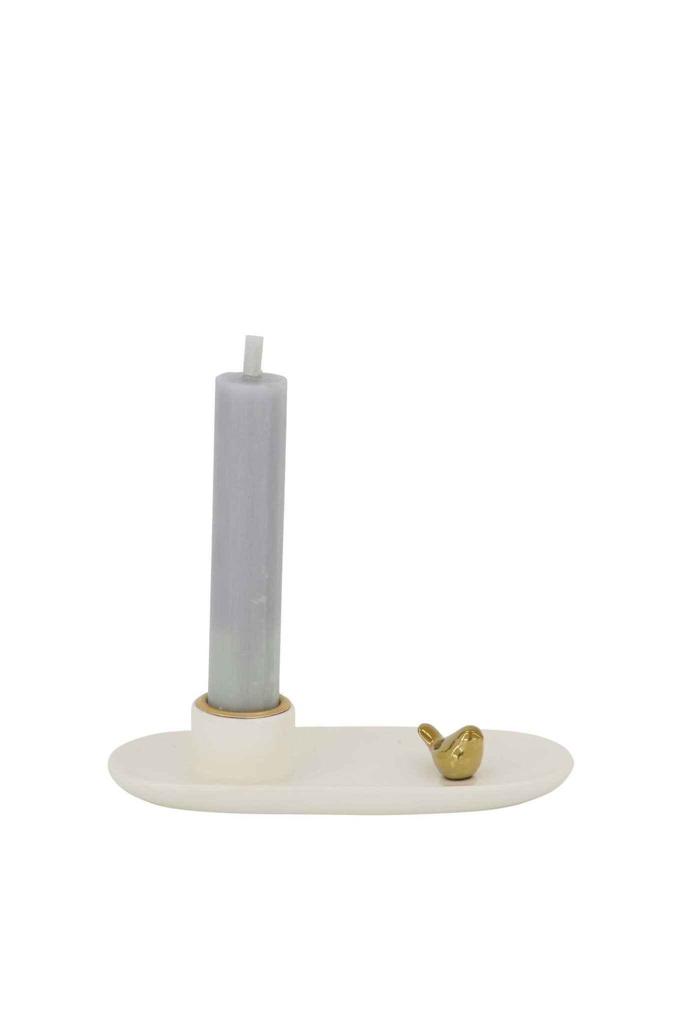 Zusss | Kandelaar keramiek vogeltje wit/goud
