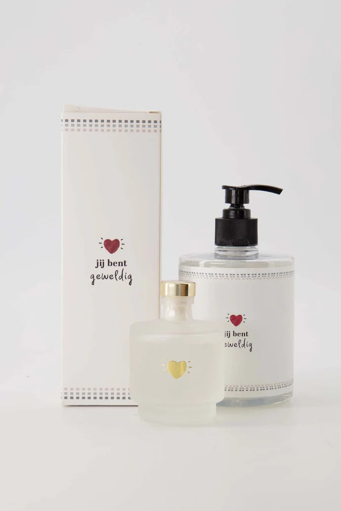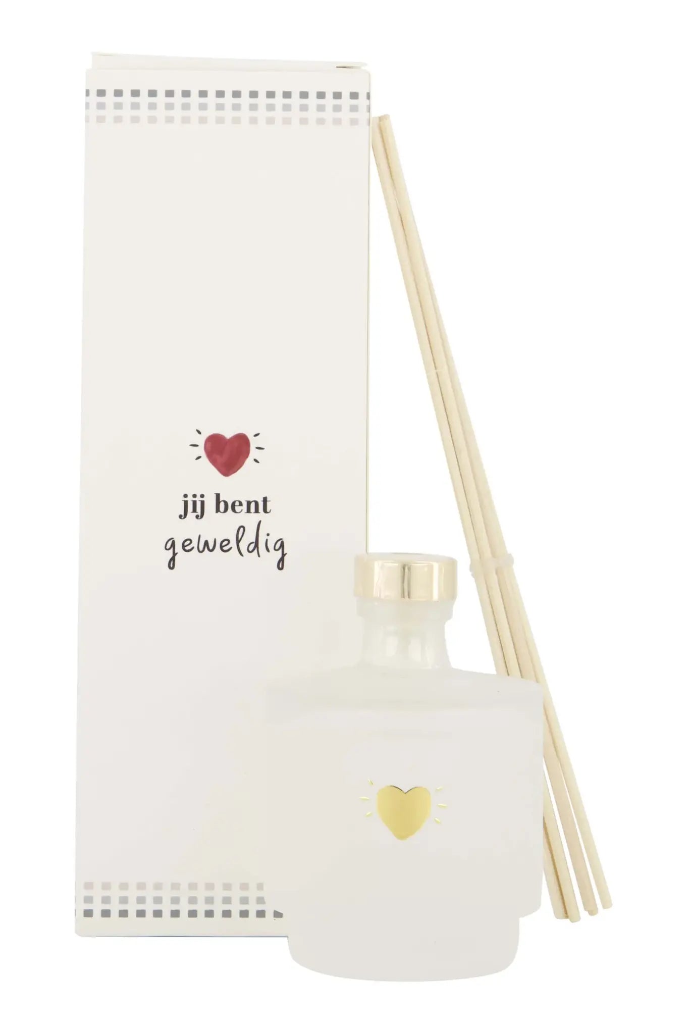 De "Jij Bent Geweldig" geurstokjes brengen een heerlijke geur in je huis, verpakt in een stijlvol wit glazen flesje. Perfect voor elke ruimte, of je nu je woonkamer, slaapkamer, of badkamer een opfrisbeurt wilt geven. Het is een eenvoudige manier om je huis een warme en uitnodigende sfeer te geven.