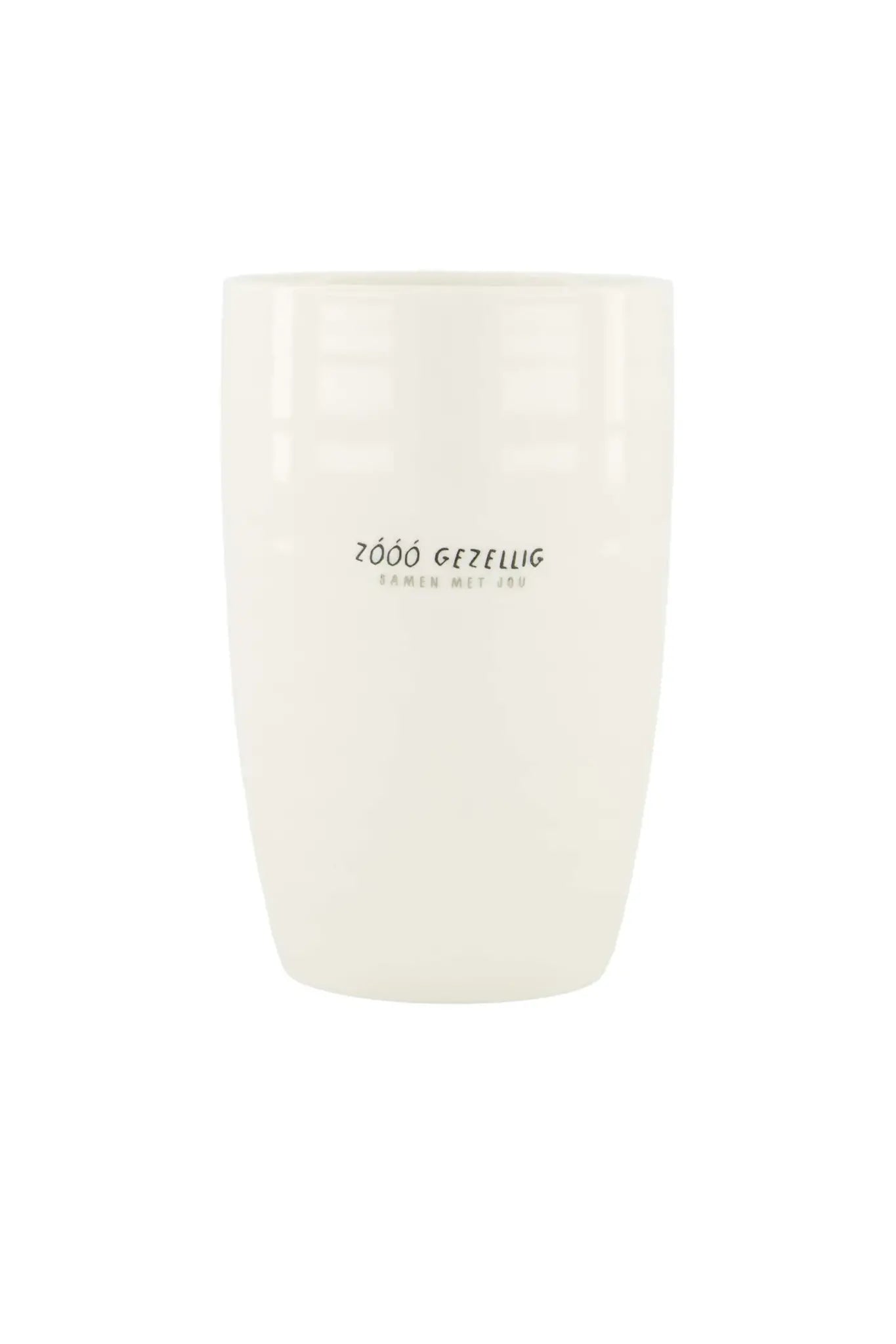 Deze charmante mok met de tekst zóóó gezellig brengt warmte in je keuken. Dankzij de eenvoudige witte kleur en het zwarte lettertype past hij moeiteloos in elk interieur. Of je nu van je ochtendkoffie of een avondthee geniet, deze mok voegt een subtiele en stijlvolle touch toe aan je dagelijkse routine. Het keramische materiaal zorgt voor een stevige en duurzame mok, ideaal voor dagelijks gebruik.