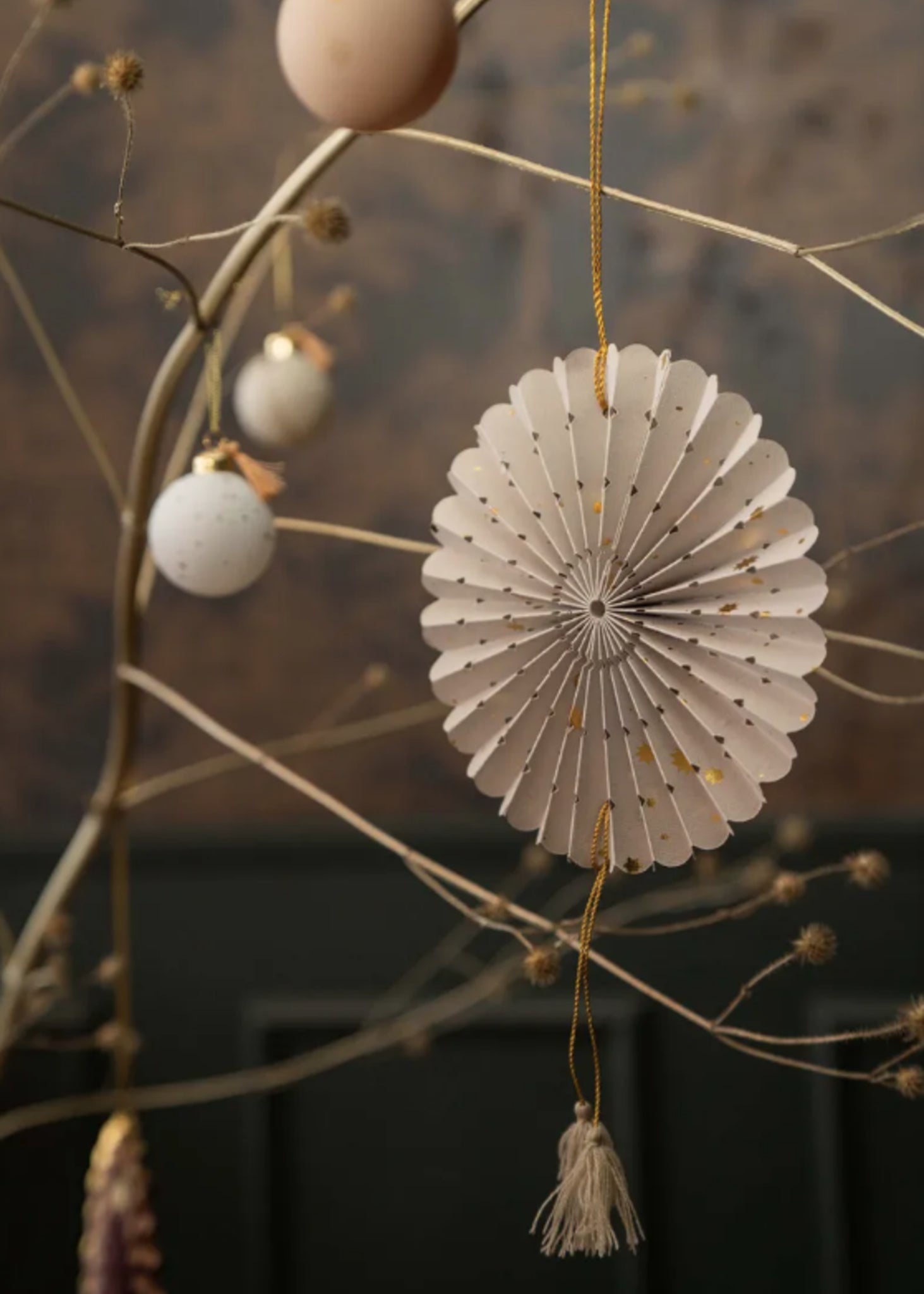 Wil je een keer andere kerstdecoratie in je huis? Dan is deze papieren waaier perfect om feestelijke sfeer te creëren. Hang hem op in de woonkamer, boven je feesttafel of in je kersttakken, deze waaier past overal perfect bij. De waaier is versierd met leuke gouden sterren en heeft twee speelse kwastjes die eronder hangen. Als je de waaier combineert met onze andere Zusss kersthangers, ben je helemaal klaar om in de feeststemming te komen!
