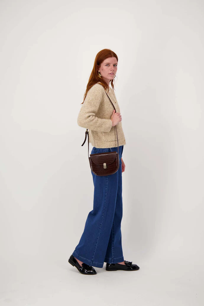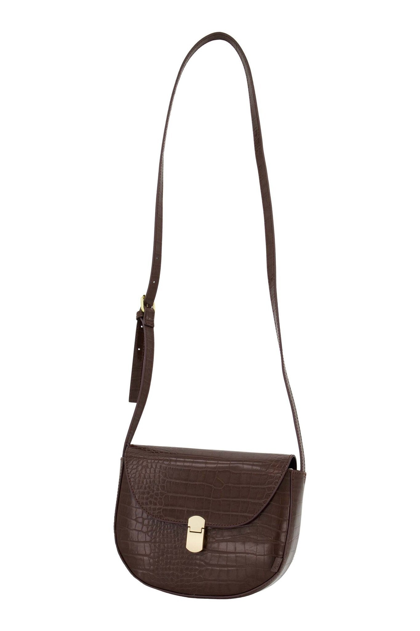 Zusss | Schoudertasje croco gouden sluiting chocoladebruin